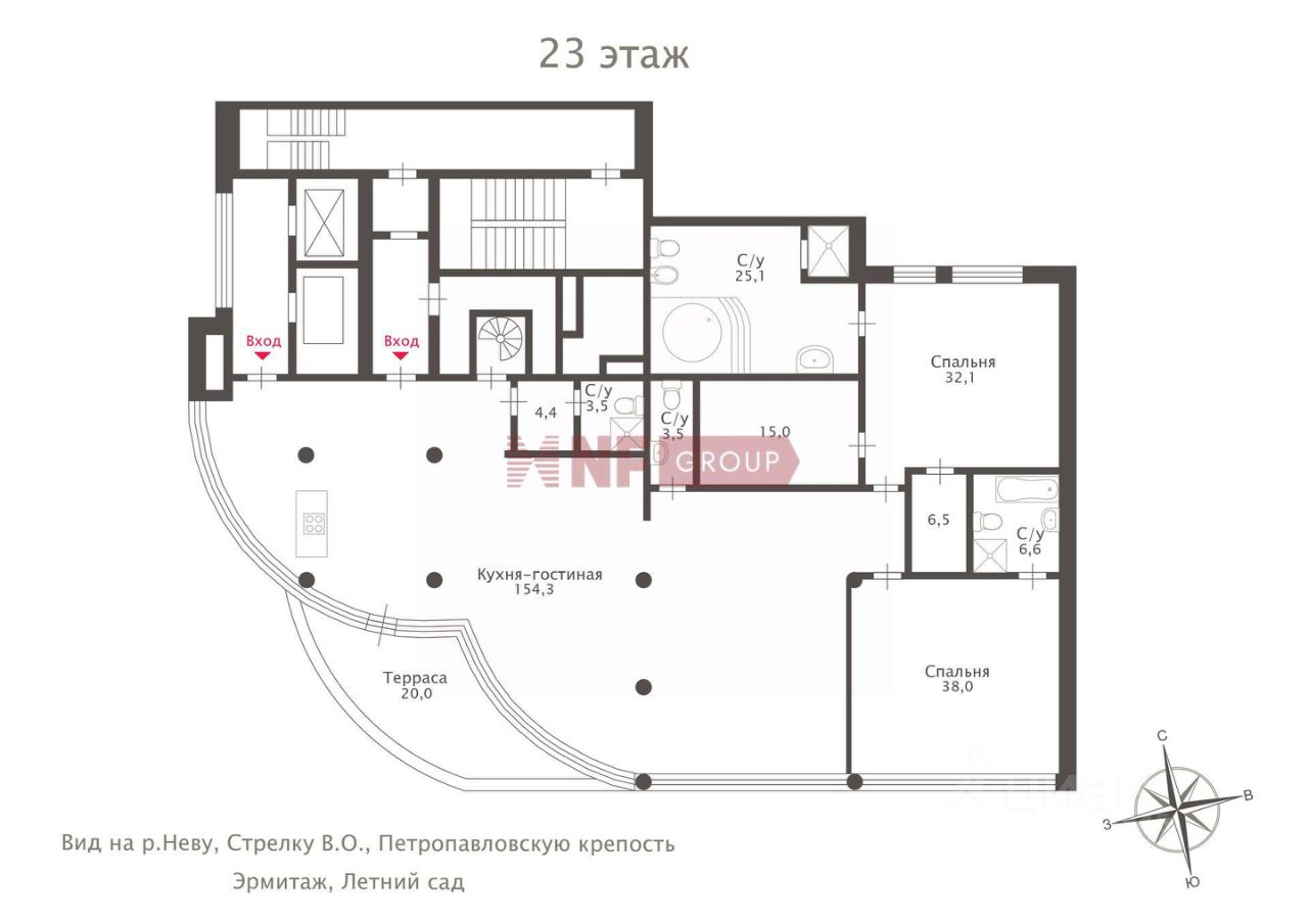 Это самая высокая точка с видом на исторический центр Санкт-Петербурга. Здесь панорама города раскрывается во всей полноте: акватория Невы, как главная площадь, главные архитектурные доминанты, праздничные салюты и главные события города — как на ладони. Это не просто вид — это сцена, на которой оживает Петербург.
