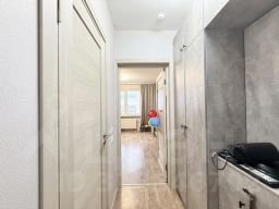 • Эргономичная планировка, позволяющая функционально зонировать жилое пространство. Площадь комнаты-кухни - 14 кв. м. Площадь прихожей с нишей под гардеробный шкаф - 2.85 кв. м. Совмещенный санузел площадью 3,1 кв. м.