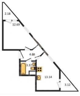 - комната 12,69 кв.м. с лоджией (в лоджии 1 окно, можно использовать лоджию как гардеробную),