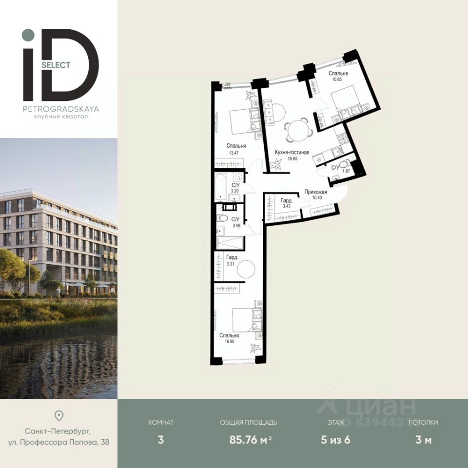 Клубный квартал iD Petrogradskaya на ул. Профессора Попова, 38 объединяет современную архитектуру, удобные планировки и развитую инфраструктуру, предлагая комфортную жизнь в престижном районе Санкт-Петербурга. Из квартир открываются виды на Иоанновский монастырь и реку Карповку. В шаговой доступности три станции метро: "Петроградская", "Чкаловская" и "Чёрная речка". 3-метровые потолки и эксклюзивные планировки создают атмосферу простора и уюта. Внутреннее пространство квартала включает благоустроенные дворы, курдонёры и подземный паркинг. Квартиры площадью от 20 до 136 м² с кухнями-гостиными до 40 м² и террасами с панорамными видами сдаются без отделки, оставляя свободу для индивидуальных интерьерных решений. Рядом ведущие вузы (ЛЭТИ, ИТМО), школы, детские сады, спортивные клубы, Ботанический и Вяземский сады. Удобный выезд на ЗСД, 10 минут до аэропорта Пулково. На территории квартала - кафе, рестораны, медицинские центры, детские и спортивные площадки.