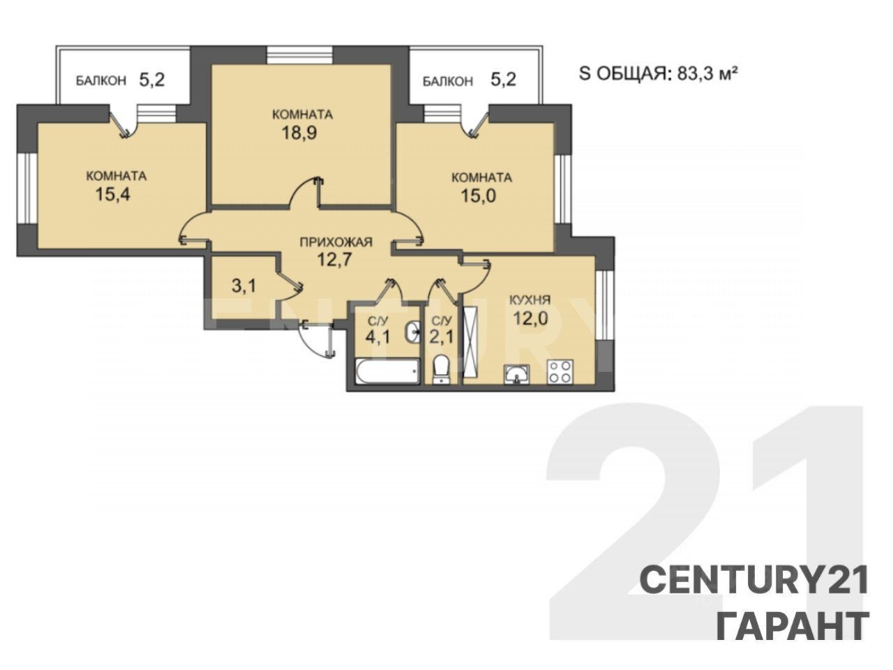 + общая площадь 83,3 кв.м