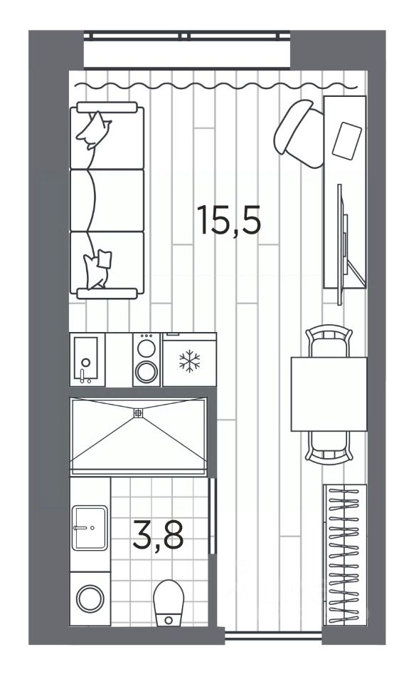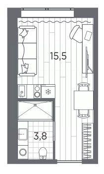 Продаются 1-комн. апартаменты-студия с отделкой в ЖК "Industrial AVENIR" на 6 этаже. Общая площадь: 19.3 кв.м., площадь гостиной 15.5 кв.м., из которых 5 кв.м. выделено под кухонную зону. Все окна выходят на одну сторону. В апартаментах один совмещенный санузел. Высота потолков 2.5 м.