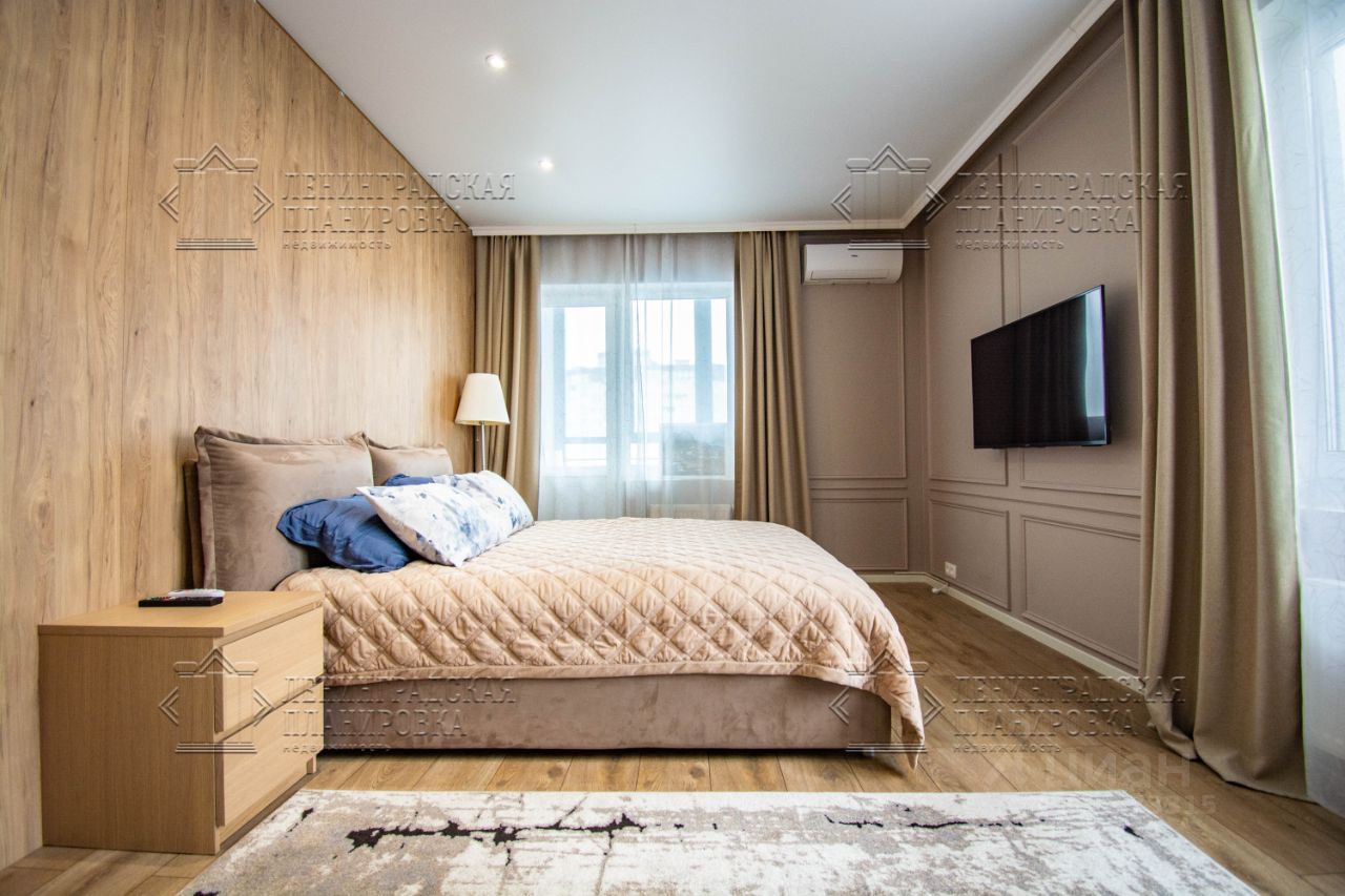в спальне два окна, выход на застекленный балкон, усиленная шумоизоляция по стенам и потолку, установлен кондиционер, 2-спальная кровать с подъемным механизмом