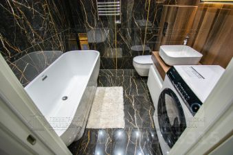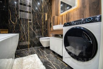 совмещенный санузел, отделка мрамор, немецкая сантехника, смесители Blanco, стиральная машина Haier