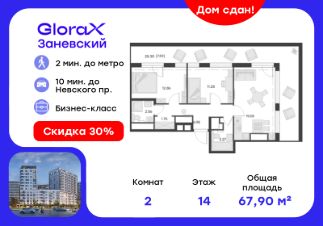 GloraX Заневский - современный комплекс бизнес-класса в шаговой в 2-х минутах от метро "Ладожская", для тех, кто не готов идти на компромиссы в вопросах комфорта и качества жизни. Мультифункциональный проект на 494 квартиры для стильных активных людей живущих в ритме большого города. GloraX Заневский располагается в экологически благоприятной локации. В пешей доступности находятся сад и 4 парка: парки Малиновка, Малоохтинский, Ладожский, Заневский и Яблоновский сад. У жителей мегаполиса есть уникальная возможность отвлечься от городской суеты и повседневных забот.