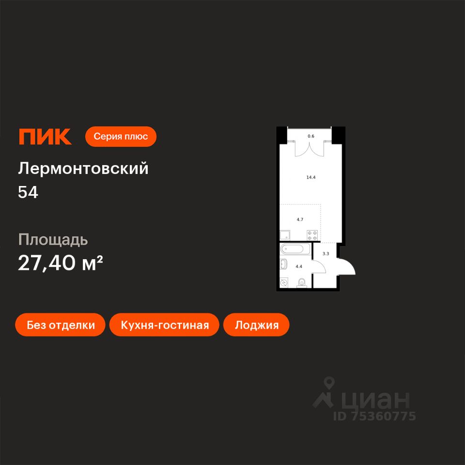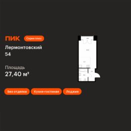 Продаётся квартира-студия площадью 27,4 кв.м на 8 этаже 9 этажного дома (Корпус 2.2, Секция 9) проекта ПИК Лермонтовский 54. Светлый просторный подъезд на уровне земли, функциональная планировка, большие окна, без отделки.
