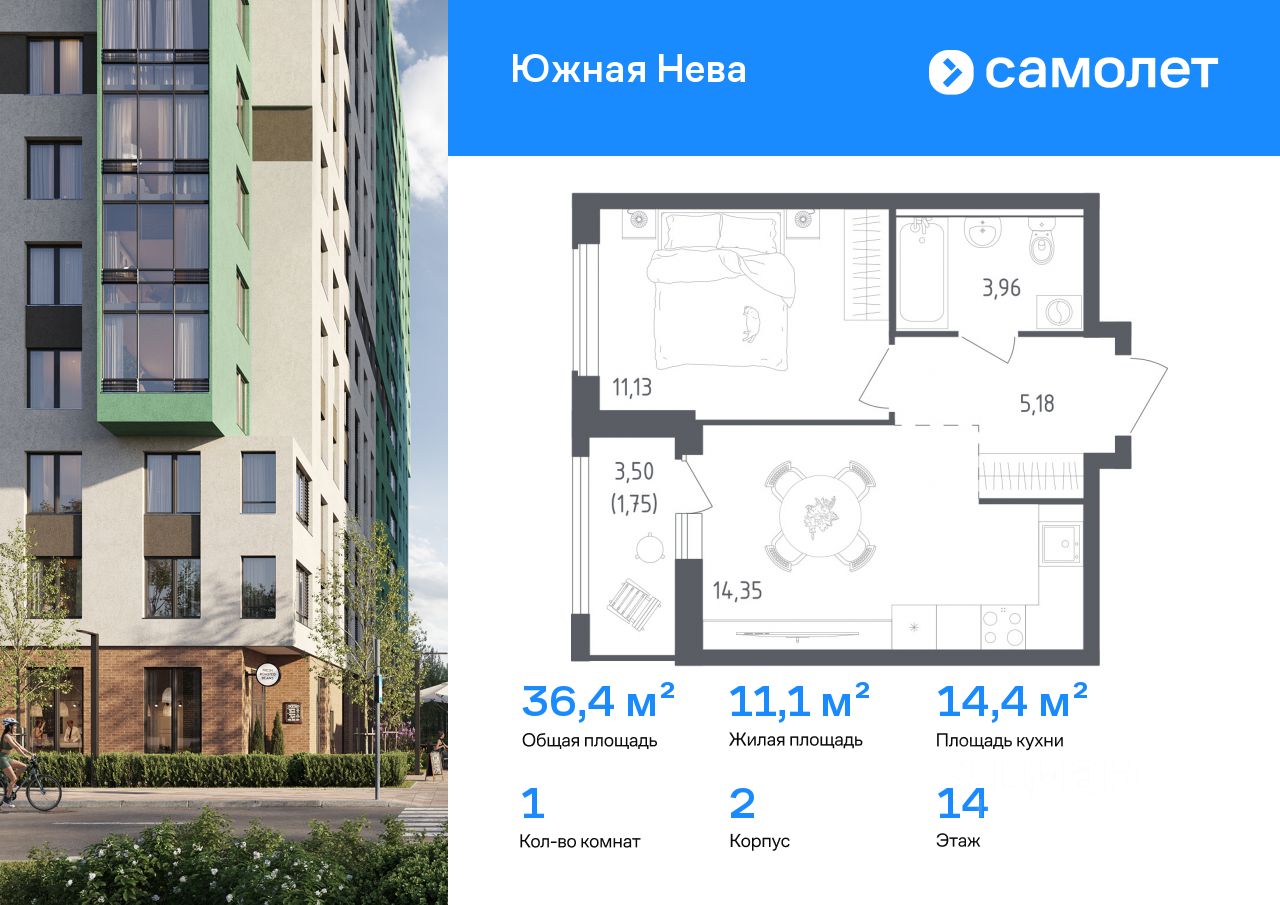 Строим кварталы для жизни с заботой о будущем. Предлагается 1-комнатная квартира комфорт-класса 36,37 кв.м в корпусе 2 на 14 этаже, в ЖК "Южная Нева"