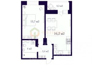 Квартира без ремонта. Вы все можете реализовать в соответствии со своими пожеланиями в выборе дизайн-проекта и материалов. Комната 13.71 кв.м, кухня-гостиная 16.23 кв.м, застекленная лоджия 3.46 кв.м.