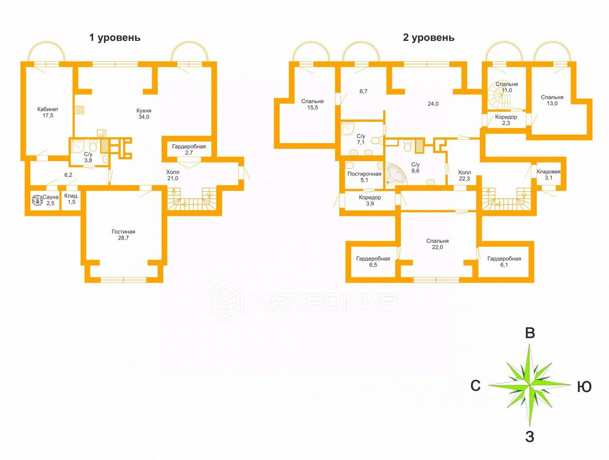 3 Просторные гардеробные и дополнительные кладовые и хозяйственные помещения