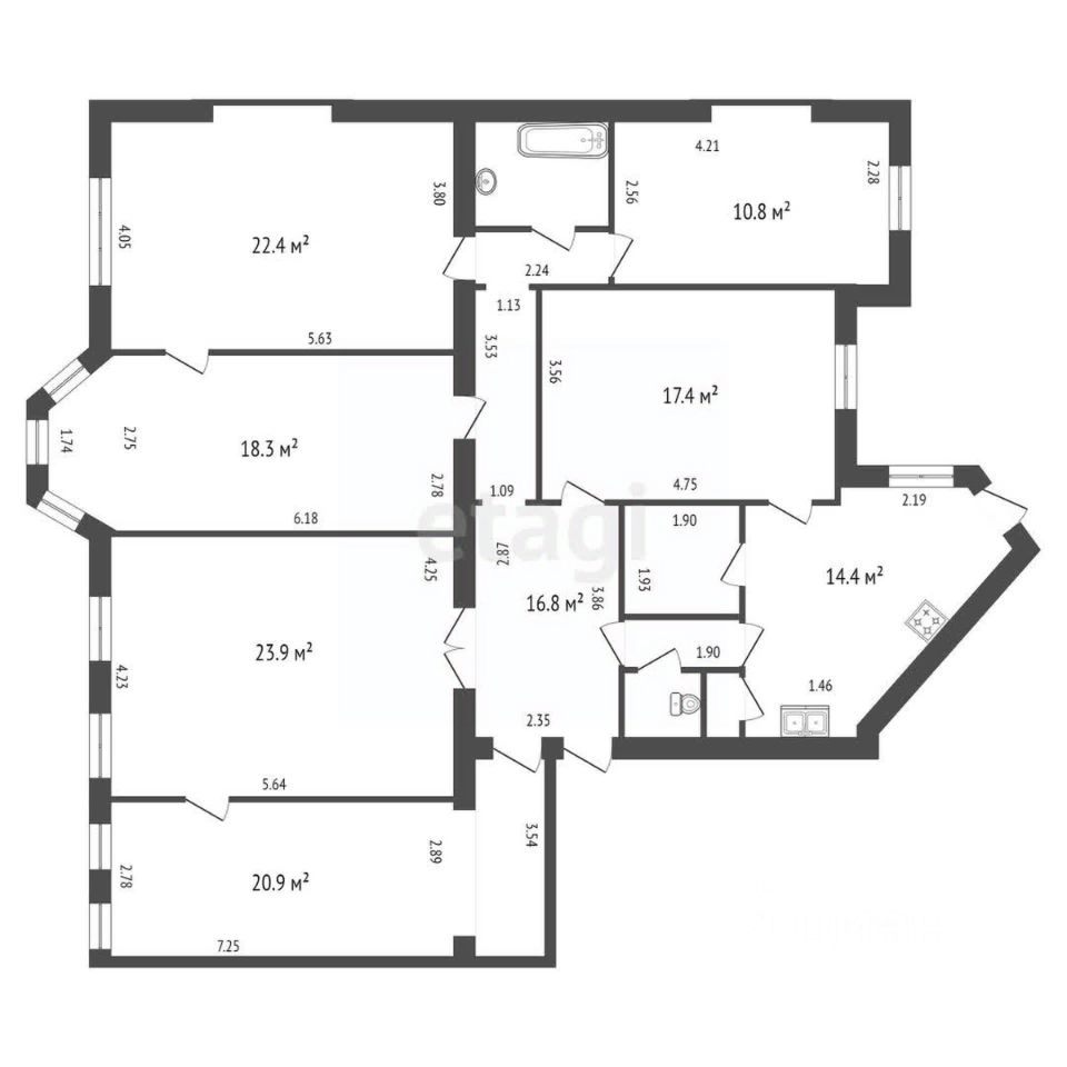 - квартира 6 комнатная, все комнаты изолированные, у собственника 1 комната,