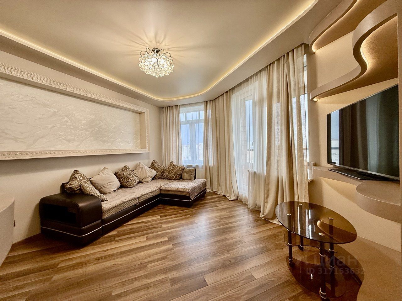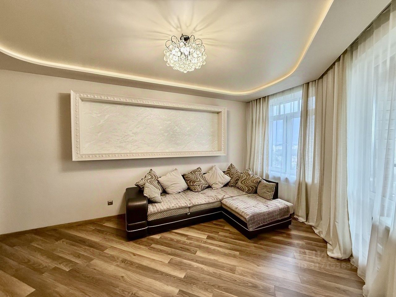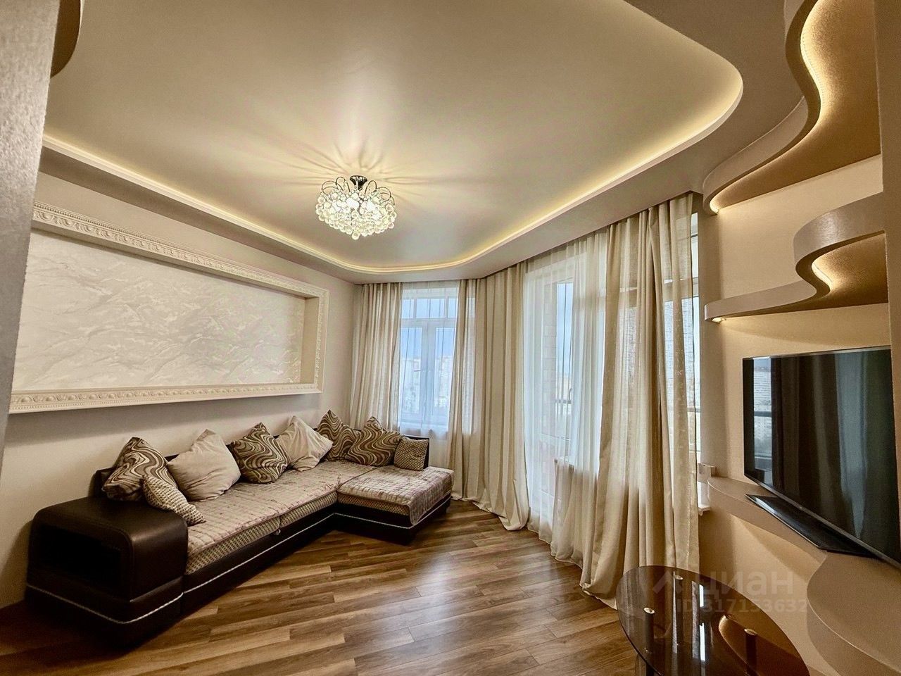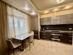 -В квартире отличная планировка : просторная кухня-гостиная более 30 кв.м, полностью оборудована техникой, остекленная лоджия 6 м2 с отличным видом на город, спальня 15 м со встроенной системой хранения, в прихожей удобный и вместительный шкаф купе, санузел с качественной отделкой и сан техникой.