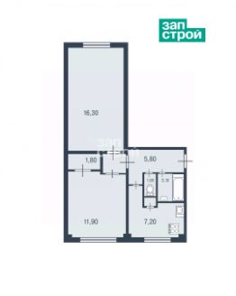 О квартире: 2х-комнатная квартира, общей площадью 46,1 м², кухня - 7,2 м², комната 1 - 16,3 м², комната 2 - 11,9 м², раздельный с\узел, коридор 5,8 м².