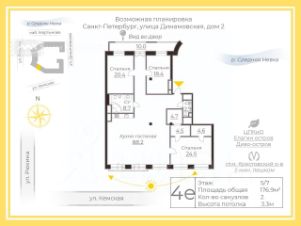 Квартира расположена на комфортном пятом этаже и обладает функциональной планировкой, которая позволяет реализовать любые дизайнерские решения. Здесь удобно реализовать квартиру с тремя и даже с четырьмя спальнями, при необходимости.