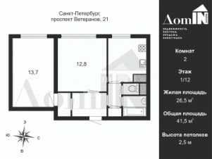 Представляем вашему вниманию квартиру, расположенную по адресу: проспект Ветеранов, дом 21.