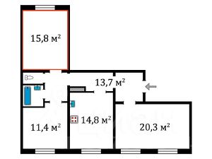 Продается комната в 3-х квартире 78,90 кв.м, комната 15,40 кв.м, кухня 17,30 кв.м. на 1 этаже.