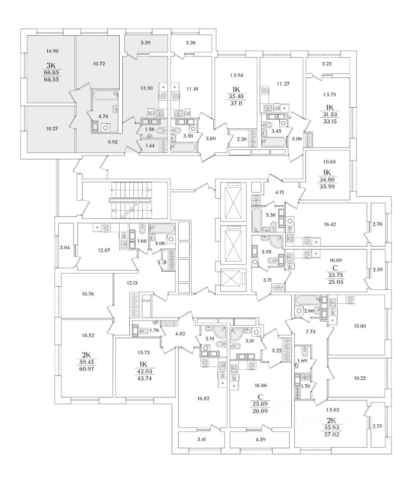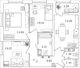 Квартира находится в 22 этажном доме, в Корпус 5 на 13 этаже. Общая площадь квартиры 68,55 кв.м.