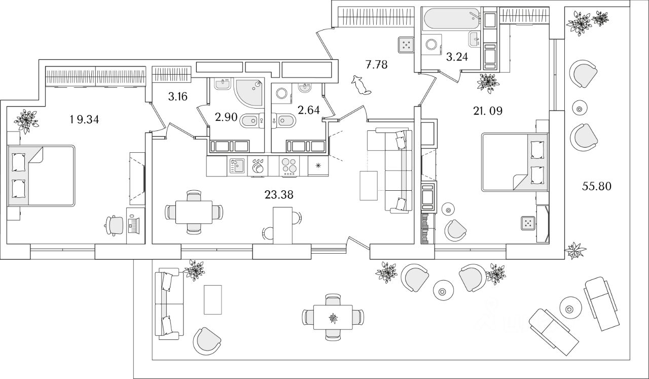 Квартира находится в 22 этажном доме, в Корпус 5 на 16 этаже. Общая площадь квартиры 100,27 кв.м.