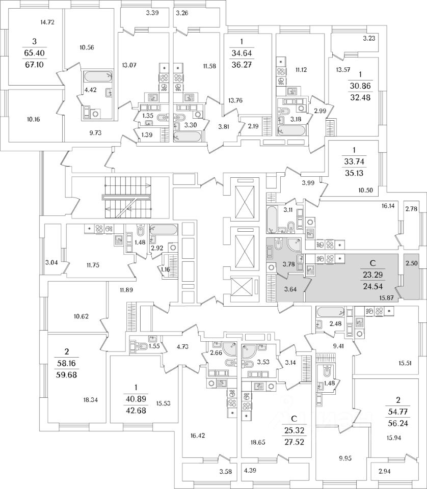 Квартира находится в 23 этажном доме, в Корпус 4 на 16 этаже. Общая площадь квартиры 24,70 кв.м.