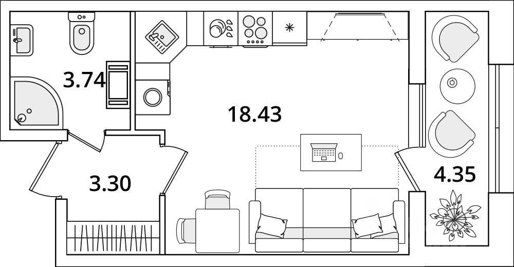 Квартира находится в 22 этажном доме, в Корпус 3 на 8 этаже. Общая площадь квартиры 27,70 кв.м.