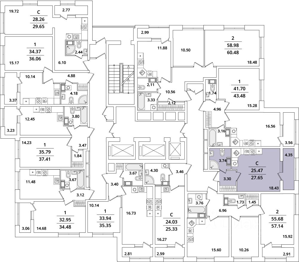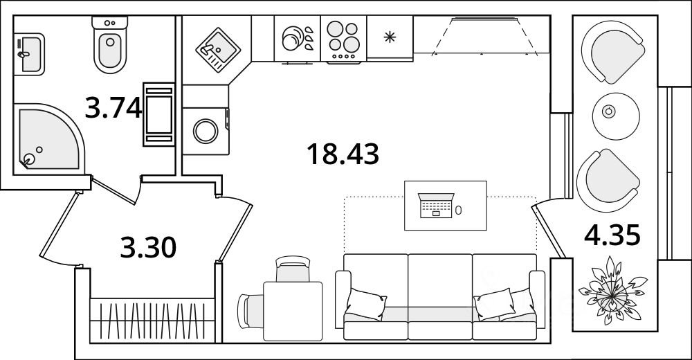 Квартира находится в 22 этажном доме, в Корпус 3 на 11 этаже. Общая площадь квартиры 27,80 кв.м.