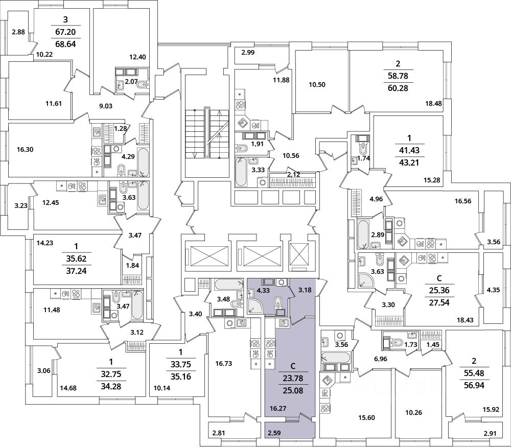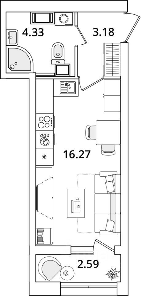 Квартира находится в 22 этажном доме, в Корпус 3 на 14 этаже. Общая площадь квартиры 25,00 кв.м.