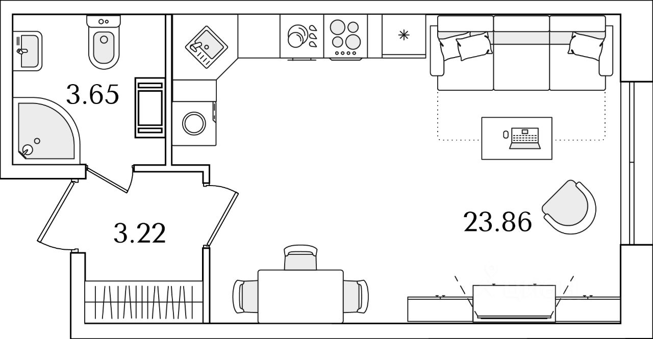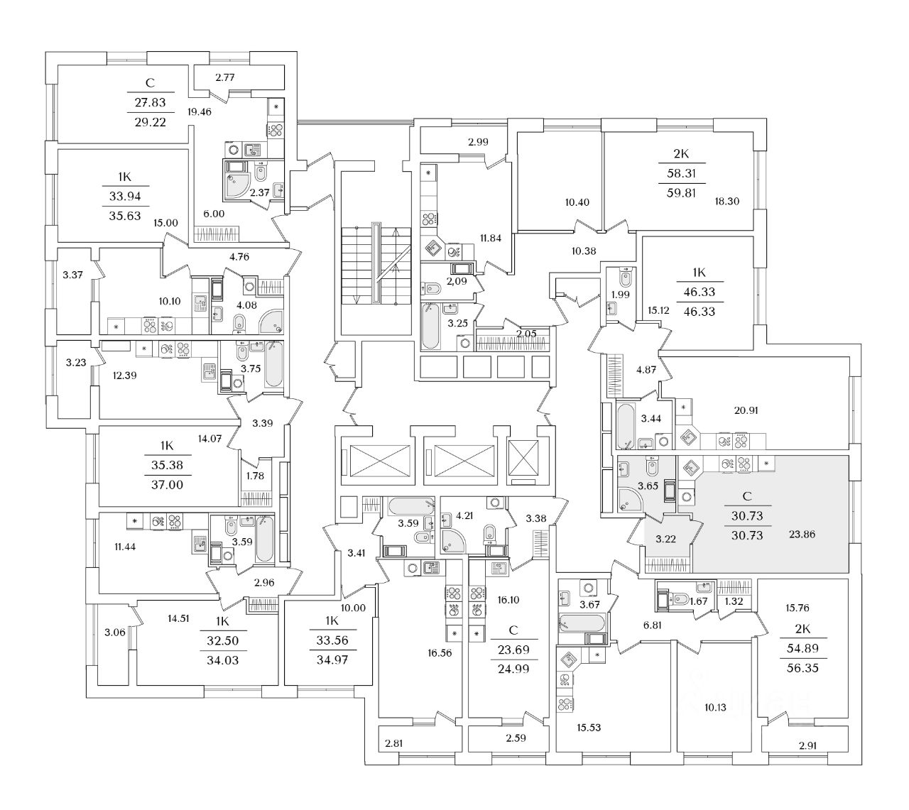 Квартира находится в 22 этажном доме, в Корпус 5 на 3 этаже. Общая площадь квартиры 30,73 кв.м.