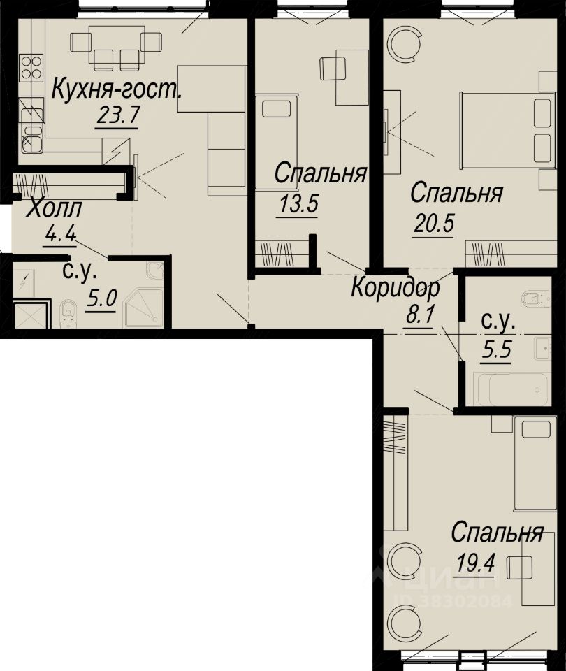 Прекрасная трёхкомнатная квартира с террасой ждет вас на третьем этаже престижного клубного дома Meltzer Hall на набережной реки Карповки, 27. С отделкой White box и площадью 101,95 кв. м, эта квартира идеально подходит для большой семьи или для тех, кто ищет просторное жильё с высоким уровнем комфорта.