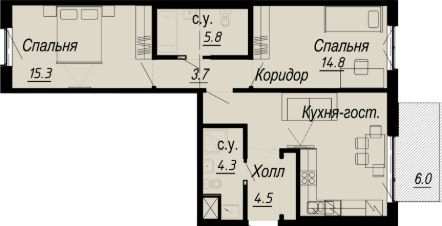 Дом рассчитан на 163 квартиры с разнообразными планировочными решениями от 45 до 313 кв. м, с мансардными окнами, французскими балконами. Есть уникальные квартиры с просторными террасами на крыше и с верандами в зимнем саду, а также квартиры с отдельным входом.