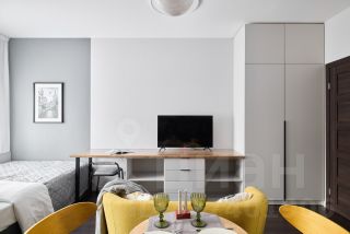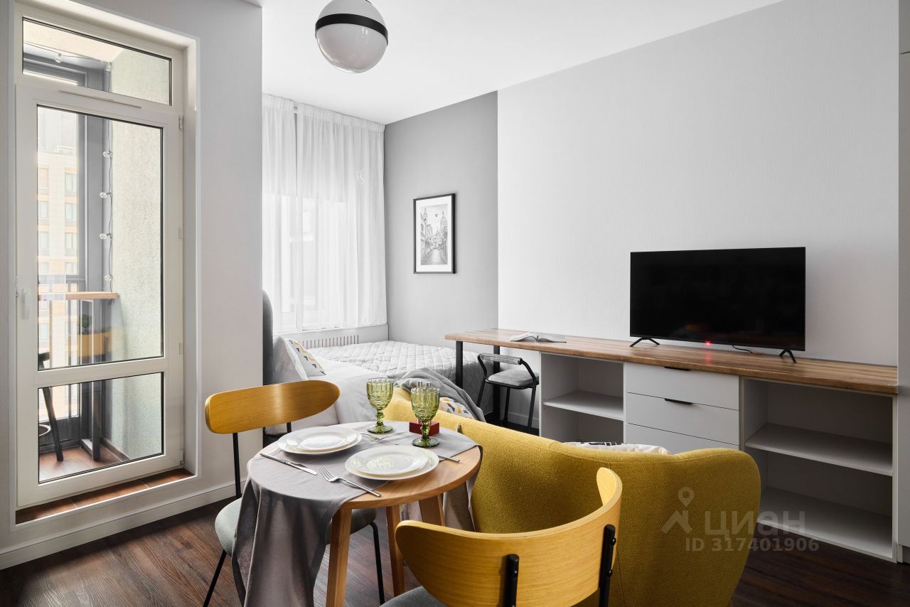 Светлая, ухоженная квартира-студия в современном жилом комплексе рядом с центром Санкт-Петербурга.