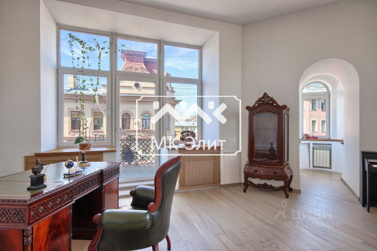 Изюминкой данной квартиры является светлая гостиная площадью 47,4 кв. м. с выходом на 2 балкона, а также великолепный эркер , откуда открывается прекрасный вид на панораму Петроградской стороны. Высота потолков в Гостиной 3,8 м, что добавляет ей света и пространства!
