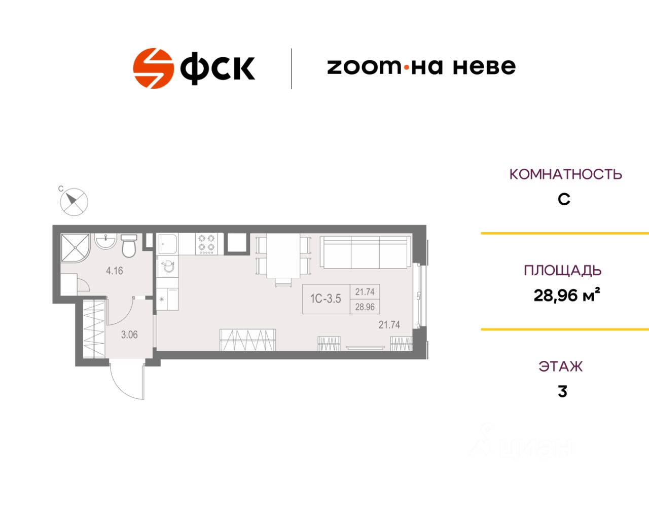 Цена со скидкой до 30% в прямой продаже от застройщика — только в этом месяце. При покупке апартаментов - паркинг за полцены. На все апартаменты действует беспроцентная рассрочка. Купите на распродаже! Покупка недвижимости в Zoom на Неве сейчас со скидкой до 30% позволит через 2 года получить доход до 6 300 000 руб. Роскошные виды на Неву. Апартамент-студия в комплексе класса бизнес-лайт Zoom на Неве на 3-м этаже. Общая площадь 28,96. Чистовая отделка.