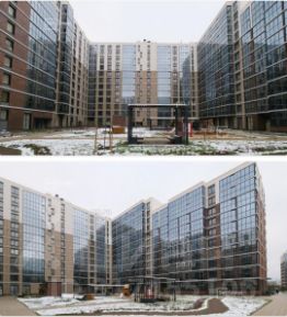 Квартира в центре корпуса, максимальное расстояние до окон напротив, при этом закрыто от шума улицы. Солнечная сторона, окна на юго-запад, высокий этаж, потолки 3 метра (только на верхних этажах). Из окон вы будете видеть не только двор, но и небо.