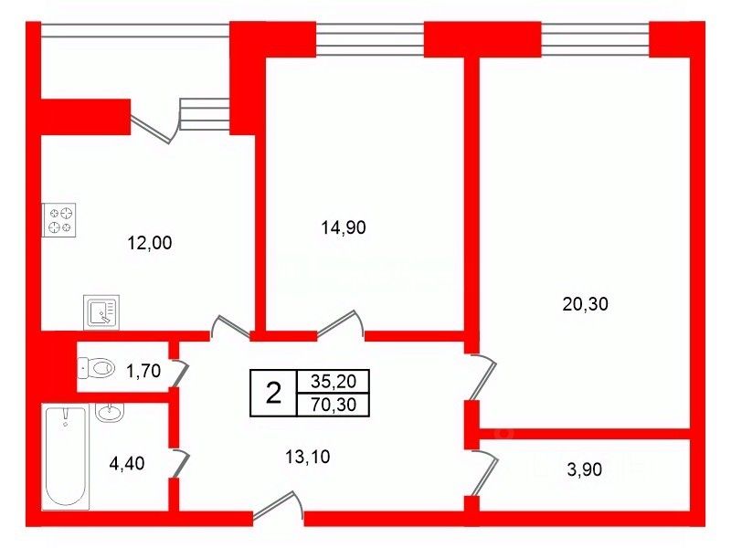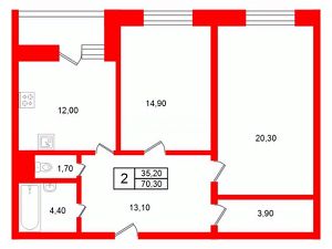 В квартире практичная планировка включает в себя: кухня 12 кв.м. с выходом на лоджию, где открывается вид на Финский залив и каждый вечер вас ждут потрясающие закаты. Две изолированные комнаты 20.3 кв.м. и 14.9 кв.м., холл-прихожая 13 кв.м. с гардеробной комнатой 3.9 кв.м, совмещенный санузел.