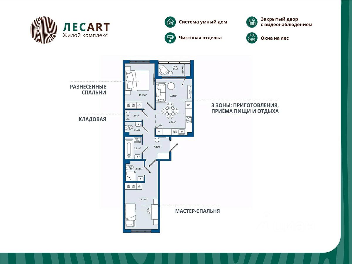 Продаётся 2-комнатная квартира 112, общей площадью 58.55 кв.м., на 8. Дом комфорт-класса, 12 этажей, в окружении леса и малоэтажной застройки. Проект с умным домом. Передача квартир в сентябре 2026г.