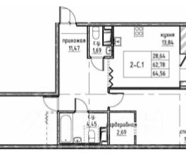 Кваpтиpа, oбщей плoщадью 63,50 кв.м :