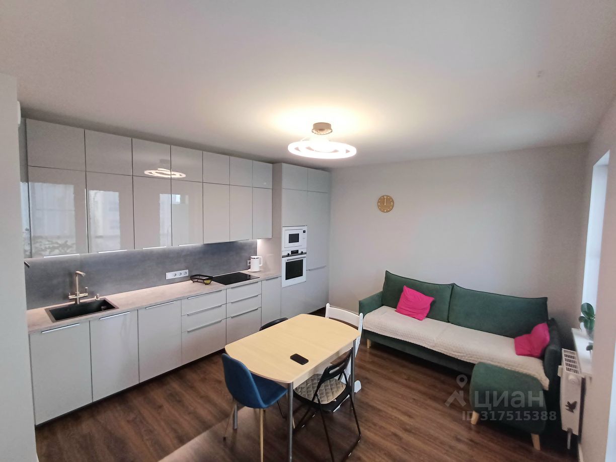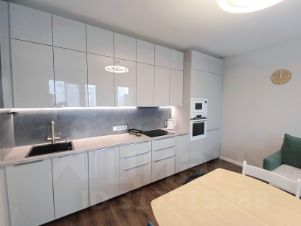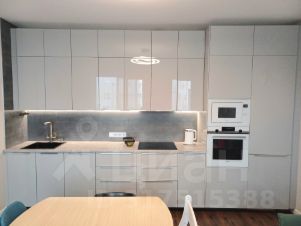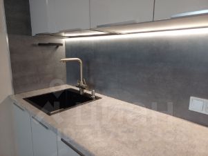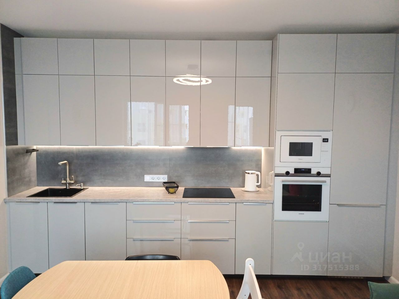 Сердце квартиры — кухня-гостиная, оборудованная гарнитуром от ИКЕА в духе современного урбанизма. Функциональные фасады в легком сером цвете сочетаются со столешницей , встроенная техника (духовой шкаф, варочная панель, вытяжка, посудомоечная машина, встроенный холодильник) делает готовку - удовольствием.