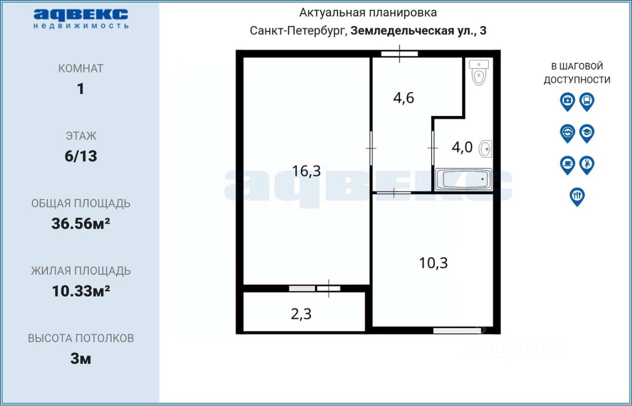 16,3 м²