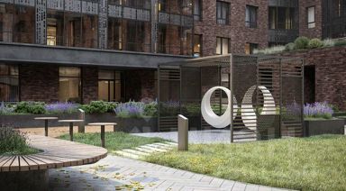 закрытая территория, видеонаблюдение, контроль доступа, зоны отдыха с газонами и цветниками, ландшафтная подстветка