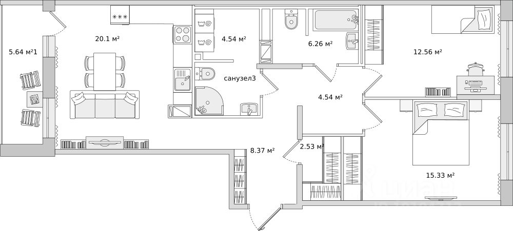 Продаётся двухкомнатная квартира в жилом комплексе ЦДС Dreamline, Корпус 2.6