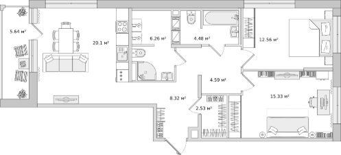 Продаётся двухкомнатная квартира в жилом комплексе ЦДС Dreamline, Корпус 2.6