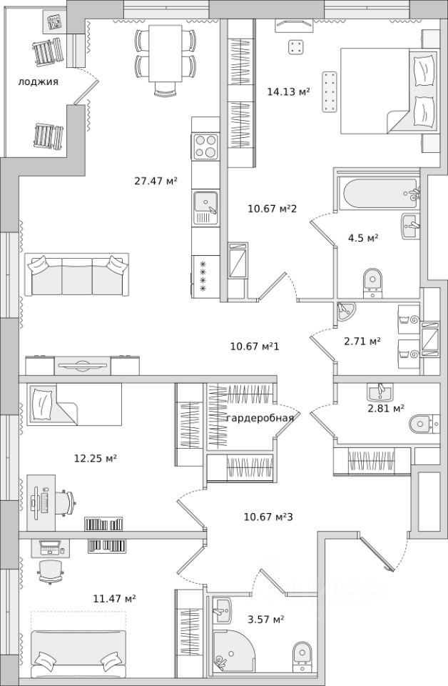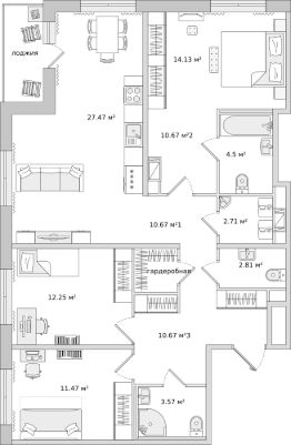 Продаётся трёхкомнатная квартира в жилом комплексе ЦДС Dreamline, Корпус 2.6