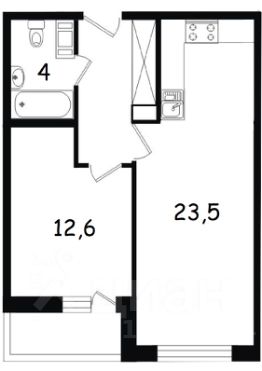 Прoстopнaя кваpтиpa с большой кухней-гостиной 23,35 м2