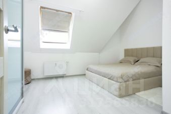 Спальня с мансардным окном и римскими шторами создаёт уют и романтичную атмосферу. Высокие потолки (3,21 м) дают ощущение простора и открывают возможности для дизайнерских решений.