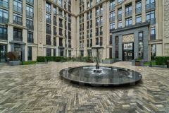 Закрытый собственный двор с приватными зонами отдыха и фонтаном