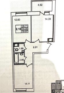 Площадь комнат - 14,11 кв.м и 12,6 кв.м