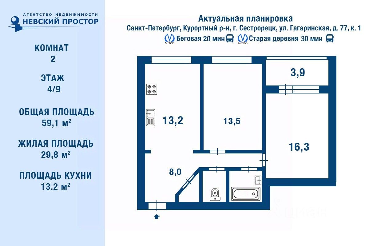 Арт. 104788178 Предлагаем Вам купить отличную 2-комнатную квартиру в доме 77 к.1 на Гагаринской улице в городе Сестрорецке в Курортном районе Санкт-Петербурга.