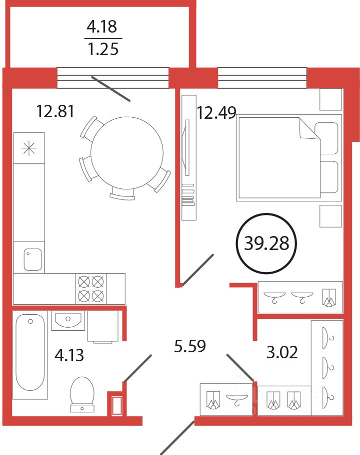 Продаётся 1 комнатная квартира в жилищном комплексе "Энфилд" (корпус Дом 18 секция 4). Общая площадь 39,28 кв. м, площадь комнат 12,48 кв.м. Санузел. Квартира расположена на 6 этаже 12 этажного дома. Срок сдачи корпуса IV квартал 2027 года.