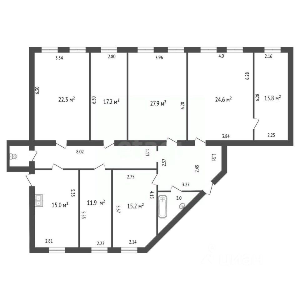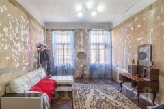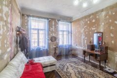 Квартира расположена в Басковом переулке, в историческом центре Санкт-Петербурга, в тихом месте без интенсивного транспортного потока. Это просторная коммунальная квартира с двумя выходами, подходящая как для проживания, так и для инвестиций. Планировка позволяет переоборудовать пространство под современные нужды — комнаты разной площади (от 11 до 30 м²) дают гибкость в зонировании, а высокие потолки открывают возможность организации второго яруса. Окна выходят на обе стороны: на Басков переулок и во двор, обеспечивая хорошую инсоляцию.