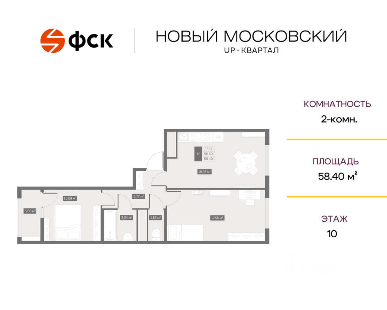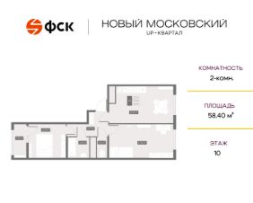 Цена со скидкой до 30% в прямой продаже от застройщика — только в этом месяце. Беспроцентная рассрочка. 2-к квартира в ЖК Up-квартал "Новый Московский" на 10-м этаже. Общая площадь 58,4. Чистовая отделка.