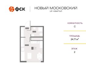 Цена со скидкой до 30% в прямой продаже от застройщика — только в этом месяце. Беспроцентная рассрочка. Студия в ЖК Up-квартал "Новый Московский" на 2-м этаже. Общая площадь 24,71. Без отделки.